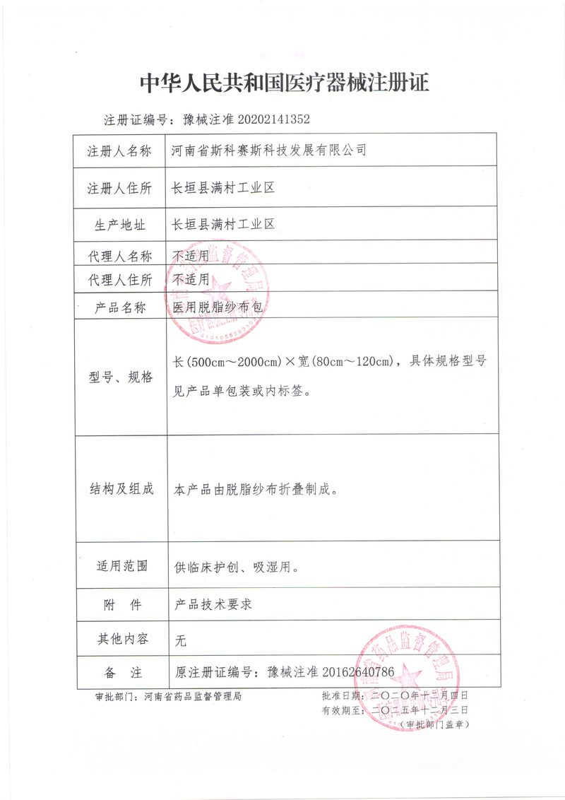 河南省斯科賽斯科技發(fā)展有限公司創(chuàng)建于 2011 年,位于“中國醫(yī)療耗材之都”- 河南省長垣縣,西臨 308 省道,南靠新菏鐵路,北依長濟(jì)高速,交通便捷,經(jīng)濟(jì)發(fā)達(dá),環(huán)境優(yōu)美。斯科賽斯積極進(jìn)入醫(yī)療健康和服務(wù)領(lǐng)域,秉承為用戶創(chuàng)造價值的理念,專注于醫(yī)用耗材解決方案的研發(fā)和運(yùn)營,并為用戶提供完善的產(chǎn)品解決方案;  斯科賽斯主要生產(chǎn)醫(yī)用麻醉系列、醫(yī)用高分子系列、醫(yī)用敷料包系列、醫(yī)用無紡布系列、醫(yī)用防護(hù)系列、醫(yī)用脫脂棉系列、生物材料制品類等七大類、100 多個品種、400 多個規(guī)格的產(chǎn)品。公司占地面積約 30000 平方米,建筑面積20000 平方米,擁有 10 萬級的凈化車間總面積 10000 平方米。擁有國際先進(jìn)水平的生產(chǎn)設(shè)備和檢測儀器,技術(shù)裝備精良,檢測手段完善,為醫(yī)療行業(yè)的不斷發(fā)展進(jìn)步提供保障。公司順利通過 ISO9001、ISO13485 質(zhì)量管理體系認(rèn)證。  斯科賽斯堅持研發(fā)高科技新產(chǎn)品,力爭在醫(yī)療器械關(guān)鍵領(lǐng)域取得技術(shù)和研發(fā)的重大突破;立足國內(nèi)和國際兩個市場,逐步實現(xiàn)管理理念、經(jīng)營機(jī)制、人力資源、技術(shù)、產(chǎn)品、市場等全方位對接,提高企業(yè)的核心競爭力;過去的歲月里,斯科賽斯砥礪前行,誠信務(wù)實,銳意進(jìn)取,不斷創(chuàng)新,用自己的睿智和辛勞,以富有責(zé)任感的使命,在探索中追求,在追求中超越,致力于成為值得信賴的醫(yī)療用品生產(chǎn)企業(yè)!在未來的日子里,斯科賽斯將一如既往豪情滿懷,信心百倍,攜手并肩,執(zhí)著追求,向更高的的目標(biāo)前進(jìn),鑄造新的輝煌!